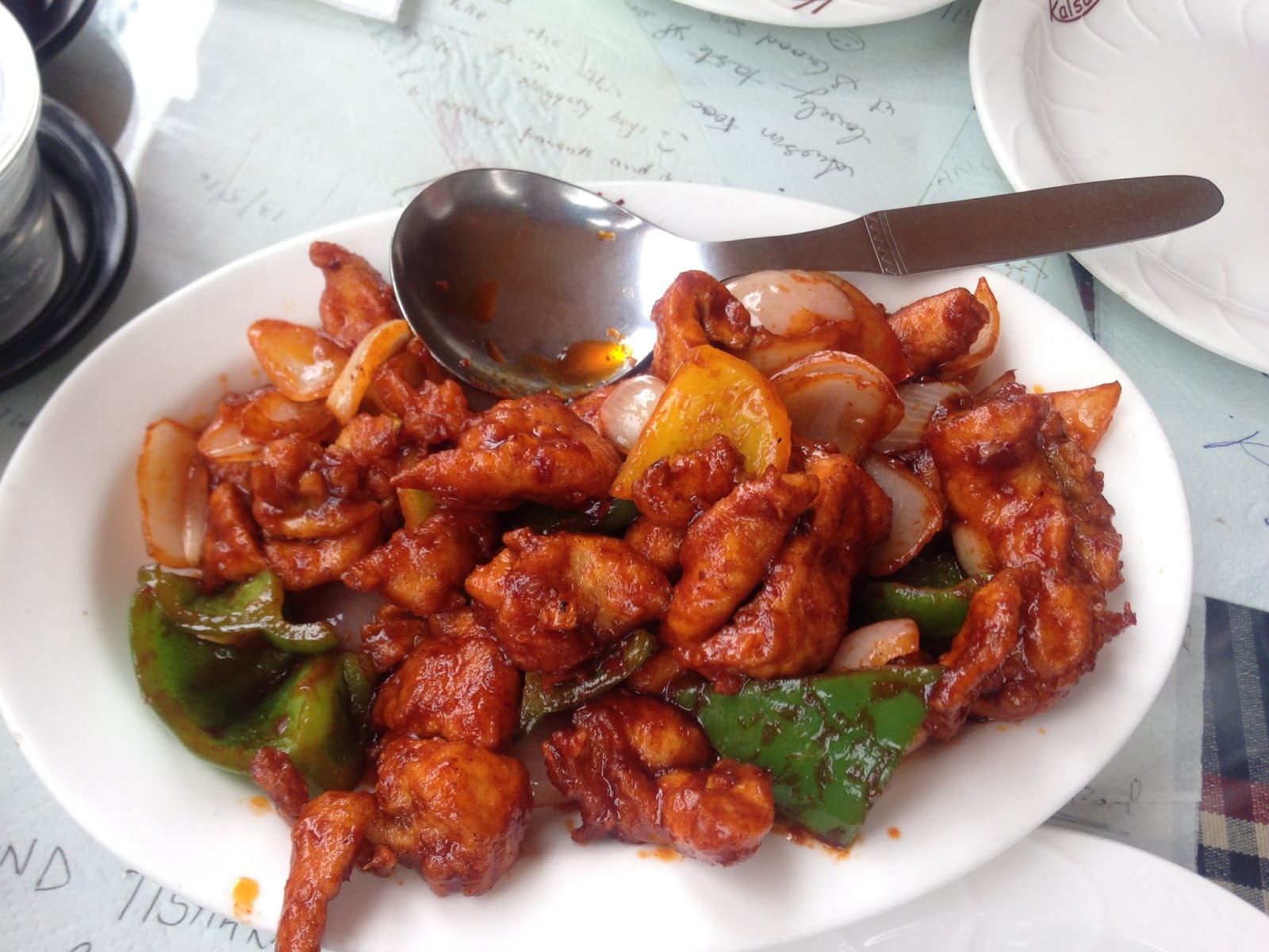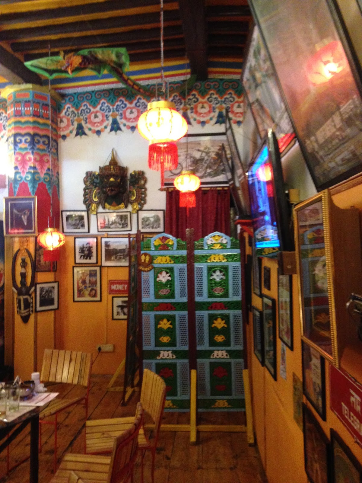 Choose your dish from their lengthy Menu as per your taste buds. This bold red coloured restaurant was started in 2005 by Mr. Jamyang Kalsang. Speciality- Tibetan Cuisine. They also have Chinese & Thai to their widespread choices of food. The décor is done in red & gold. The food was yum & warm enough to keep me warm in this rainy season. What caught my eye here, are the tissues written by guests commenting on Kalsang’s food, staff, decor. These are kept under the glass sheet on the table tops, reading “Best food served in Mussoorie”; “we will come back here soon” etc. It was an amazing feeling having my authentic Tibetan supper with authentic Tibetan music played “Om Ma Ni Padme Hum” giving me extra zeal & positivity. Their staff is very courteous & will go out of the way to help you.